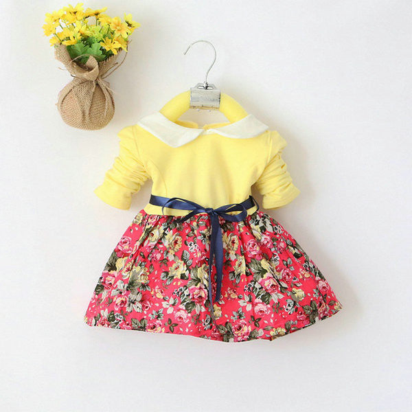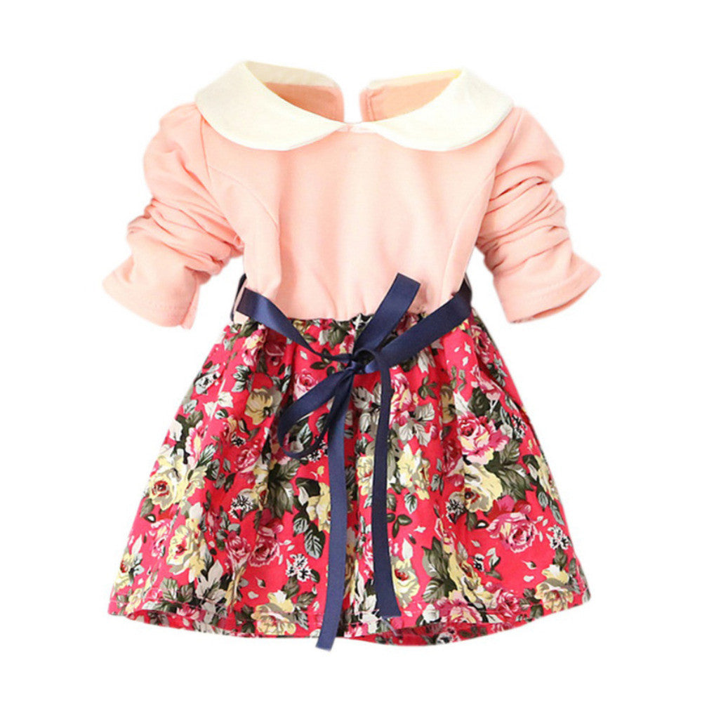 1-5Y Kids Baby Girls Princess Long Sleeve Pleat Floral Bow Mini Dress Party Tutu Dresses