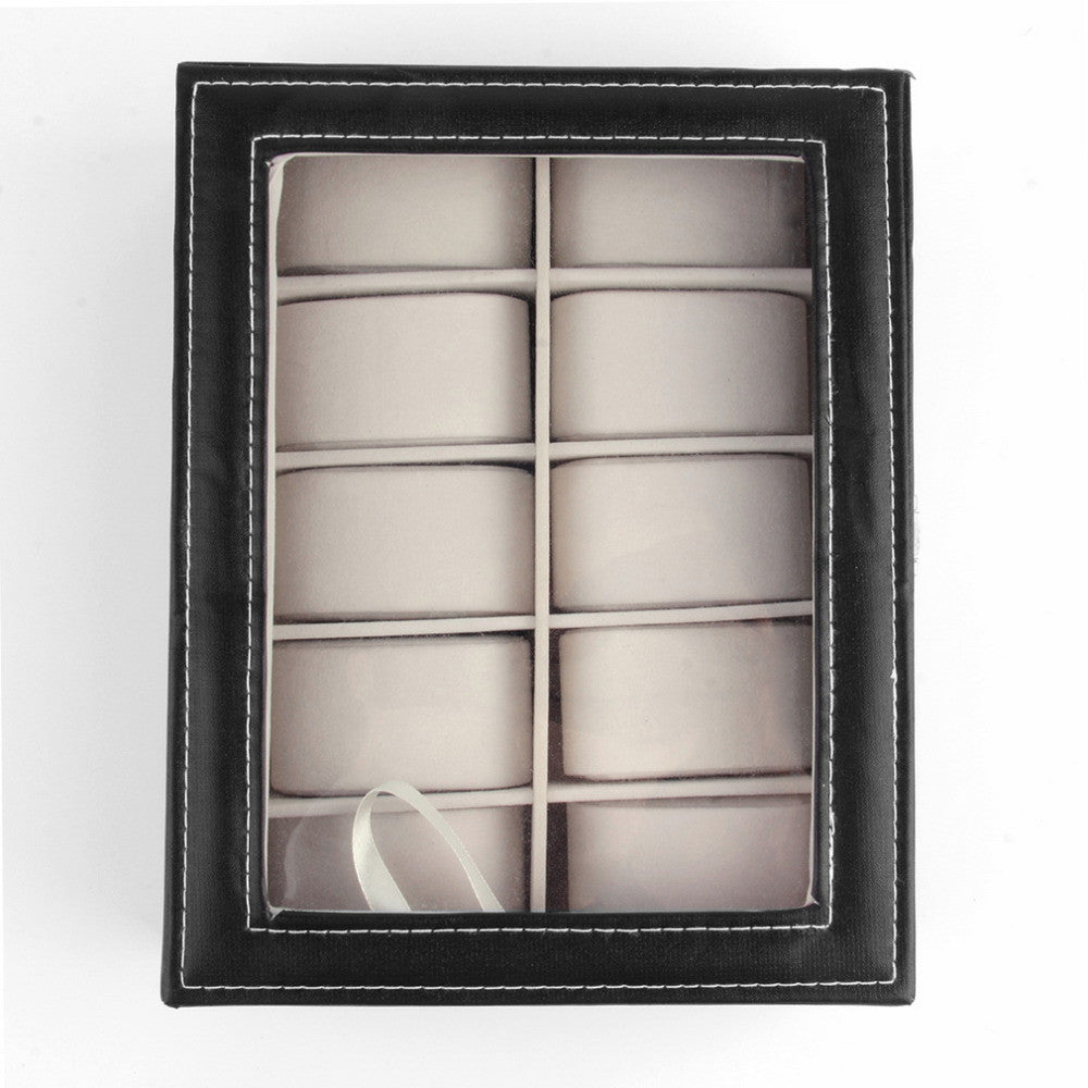 10 Grids Leather Jewelry Watch Display Box Storage Holder Organizer Case Holder