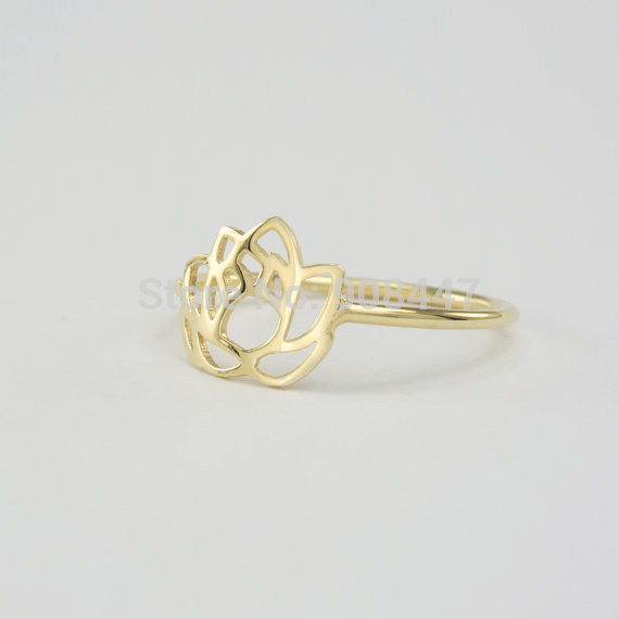 10 PCS- Cute Gold Lotus Flower Ring,plant ring -