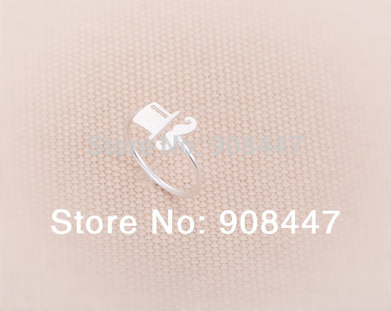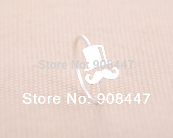 10 PCSlot-R211 Top Hat With Mustache Ring - unique rings,adjustable rings,cute ring