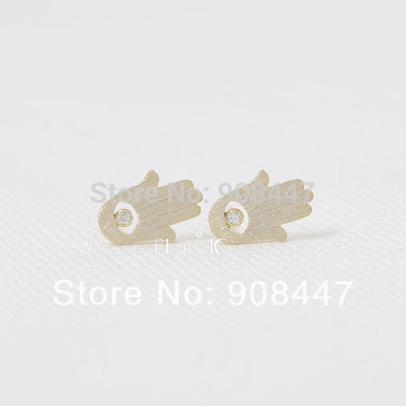 10 PCS-S007 Cute Earrings jewelry Gold Silver Hamsa Stud Earrings
