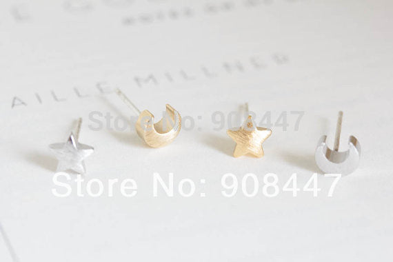 10 PCS-S020 Cute Earrings Jewelry 18k Gold Teens Moon and Star stud Earrings Silver