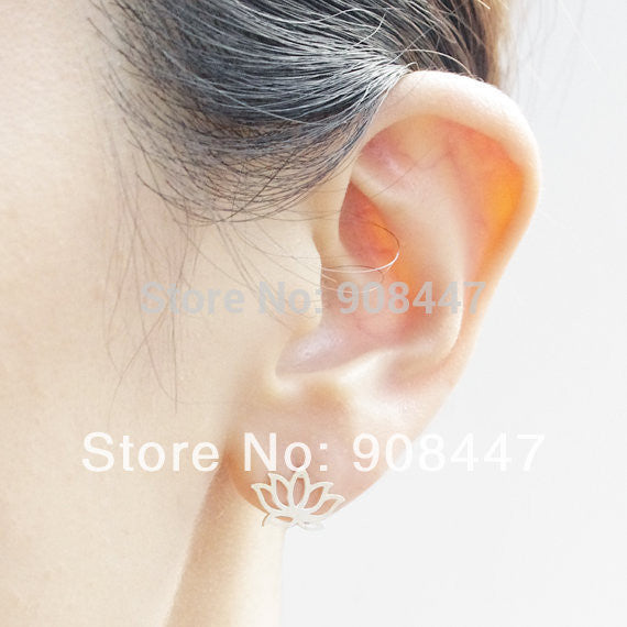 10 PCS-S021 jewelry Cute Korean Lotus Earrings Gold Silver Flower Stud Earrings