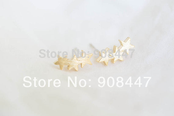 10 PCS-S027 jewelry 18K gold 3star teens stud earrings