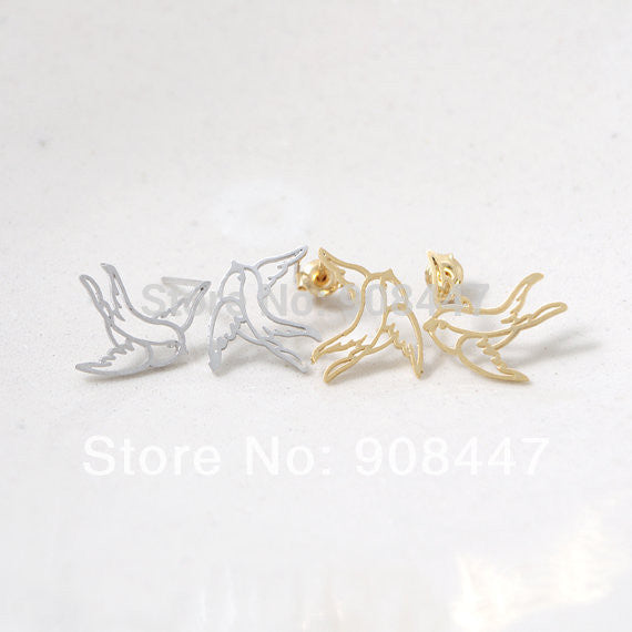 10 PCS-S036 jewelry Gold Silver Swallow Stud Earrings Bird Earrings