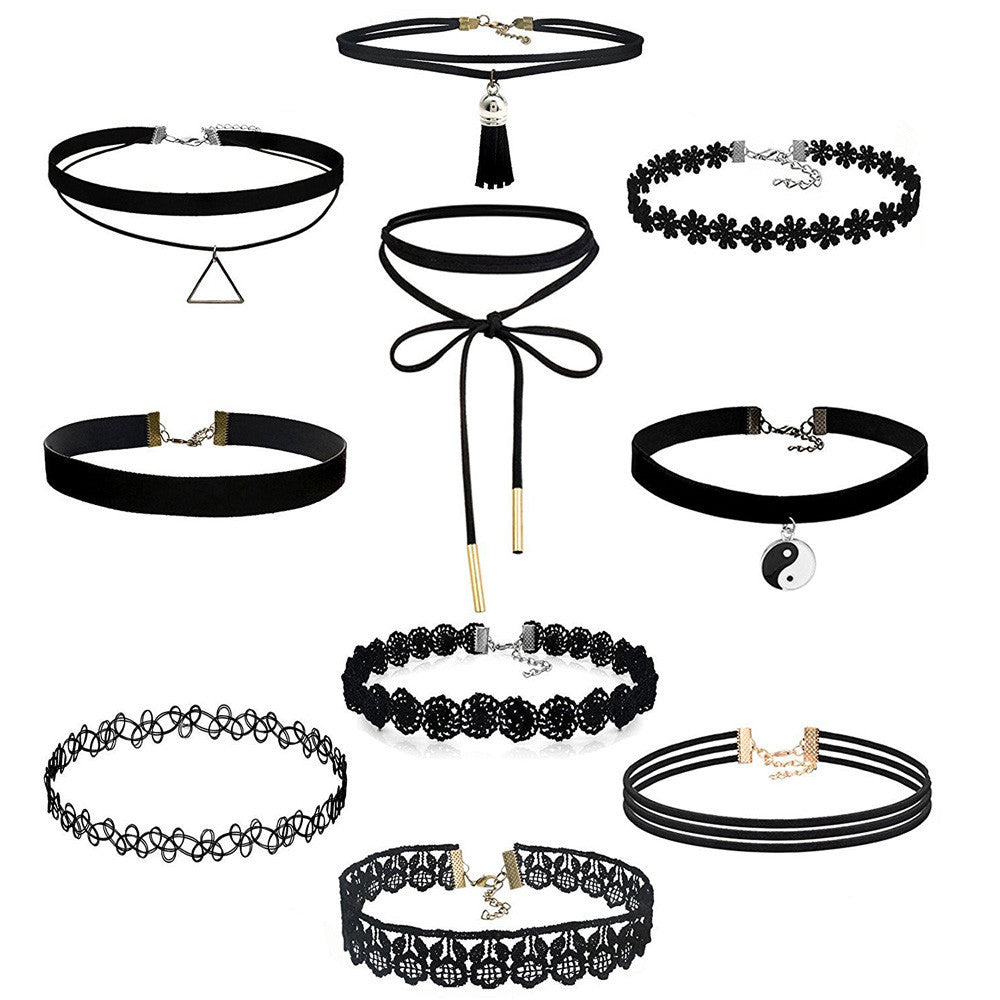 10 Pieces Choker Necklace Set Women Stretch Velvet Classic Gothic Tattoo Black Lace Chokers Gift Jewelry