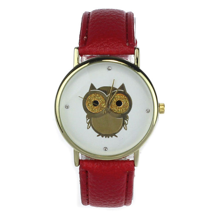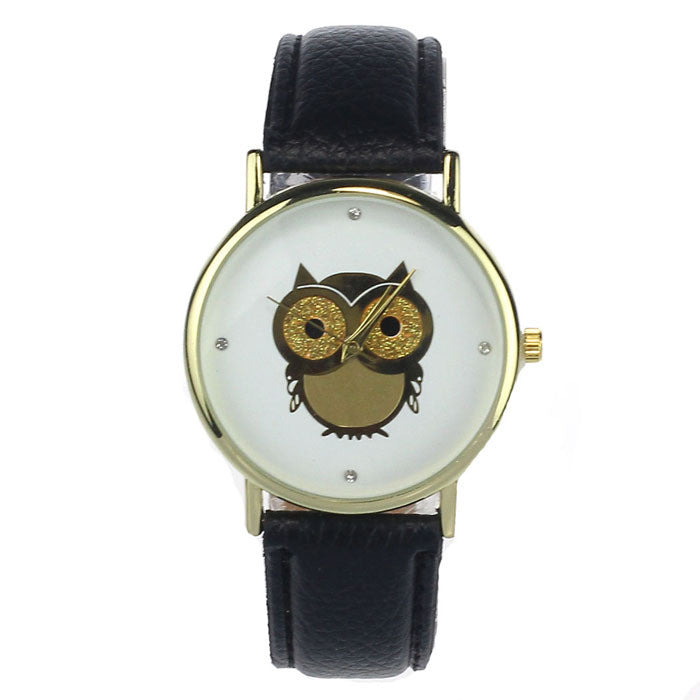 100% Leather Strap Quartz watch Women Owl Print Dress Clocks Girls Wristwatch Gifts for You 6 color