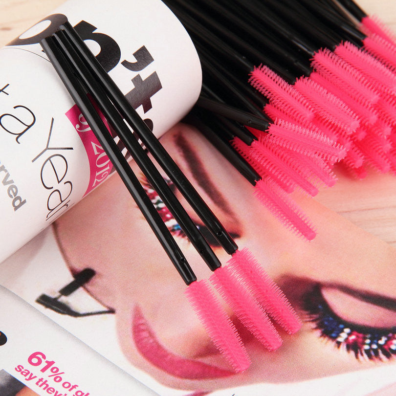 100 pcs Knife Shaped Hair Disposal Fiber Eyelash Brushes Pink + Black