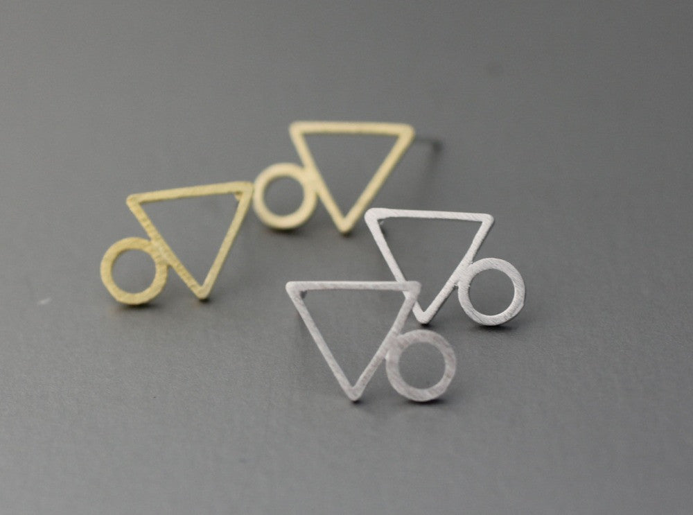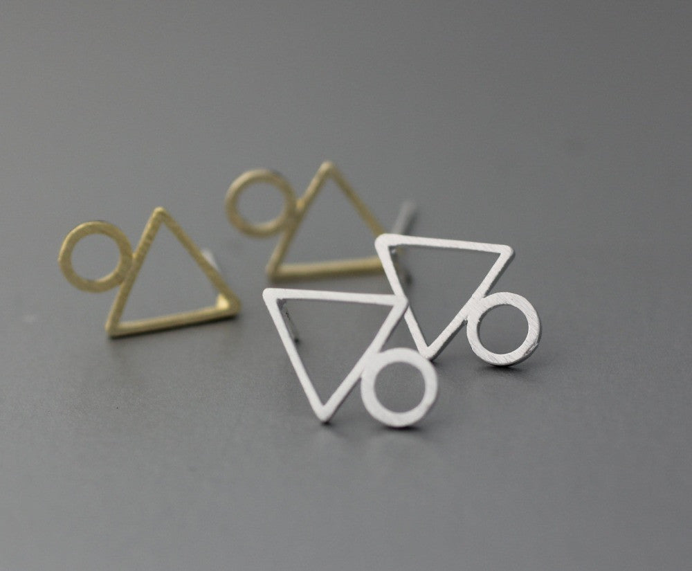 10Pairs-S084 Gold Silver and Rose Gold Triangle Circle Stud Earring Tri ce Earrings Triangle Geometry Earrings