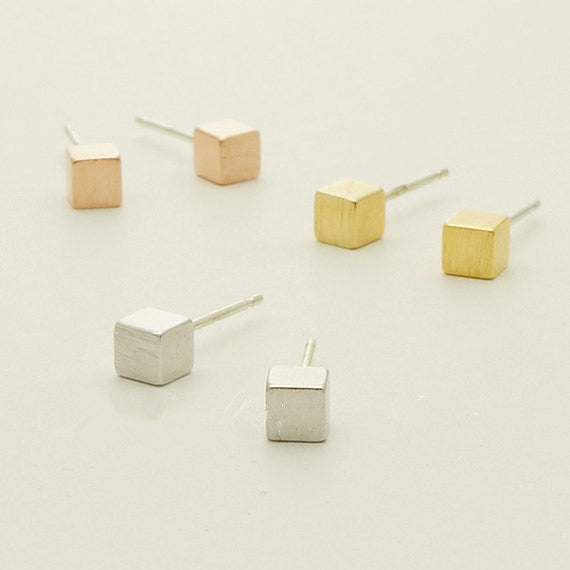 10PCS Gold Silver Rose GoldTiny Square stud earrings Simple earrings Gift mom Birthday Gift best friend Birthday S082