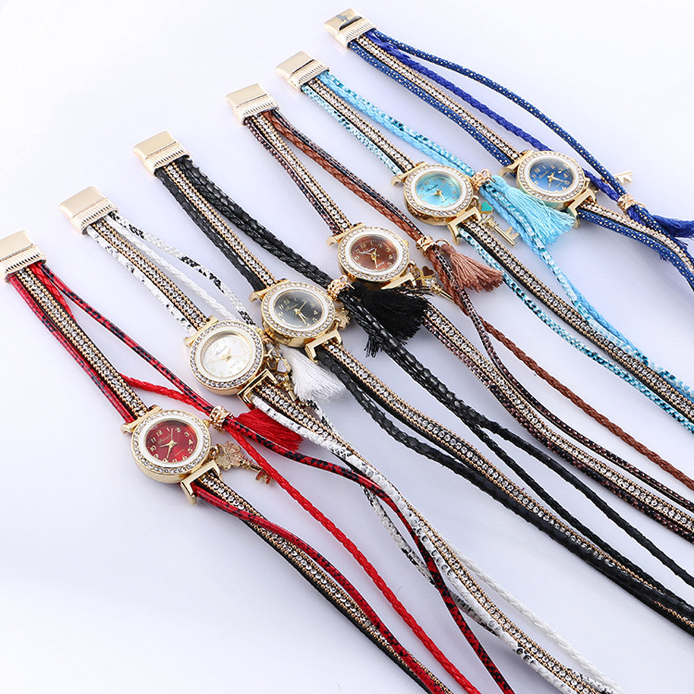 Vogue Watchs Wrap Around For Women Weave Leather Bracelet Lady Womans Wrist Watch Fast Shipping Feida