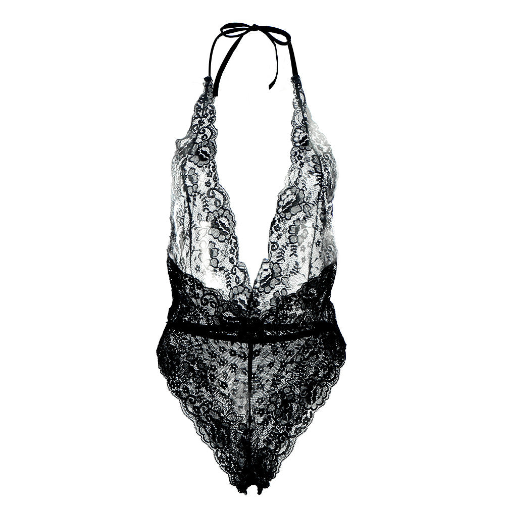 Moobody Sexy Lingerie + Eye Mask Deep V-Neck Perspective Sleepwear Lace Bodysuit Sexy Underwear Catsuit Negligee for Women