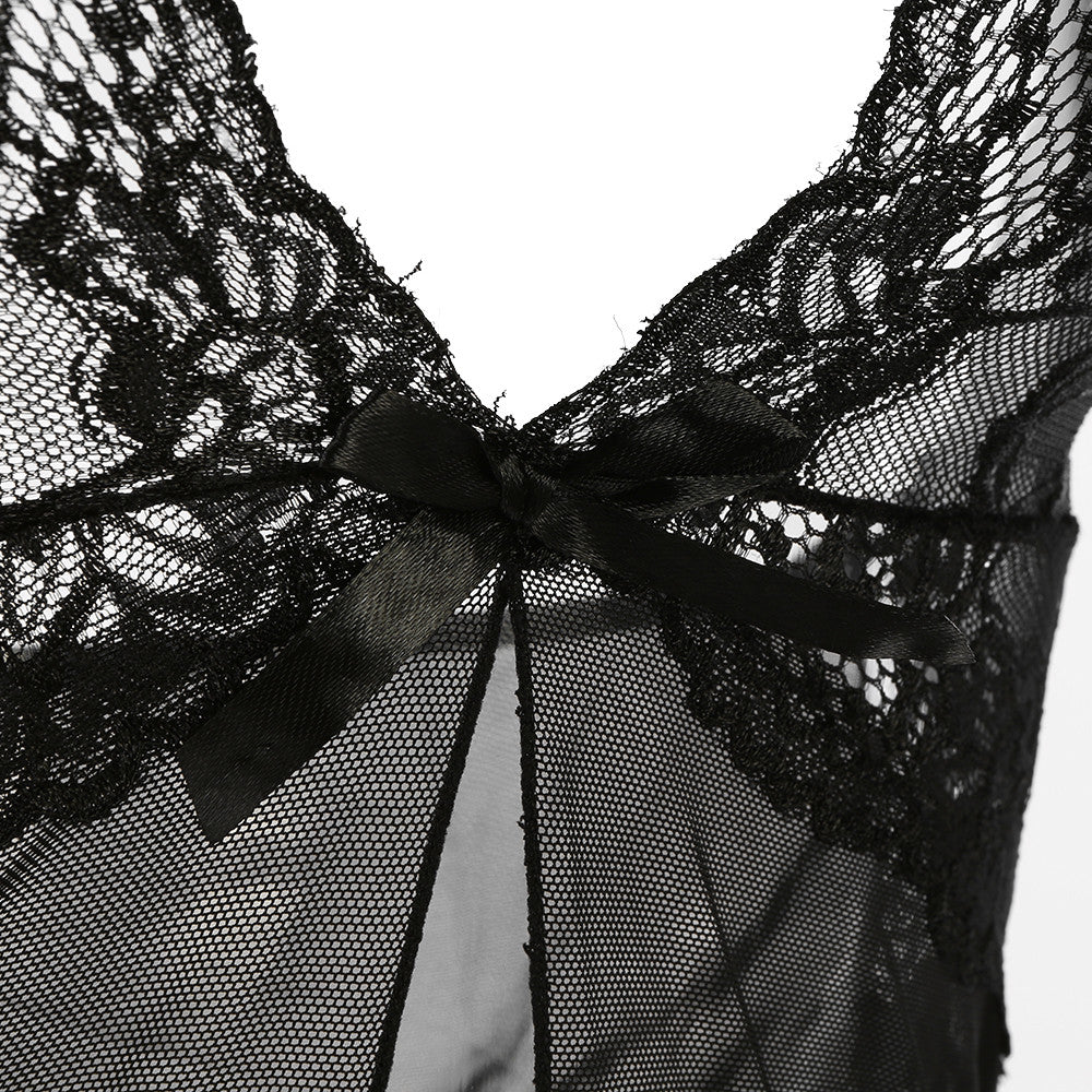 Moobody Women's See Through Sexy Sleepwear Transparente Roupa Feminina Long Gown Thongs Halter Dress Nightwear Lingerie Erotic