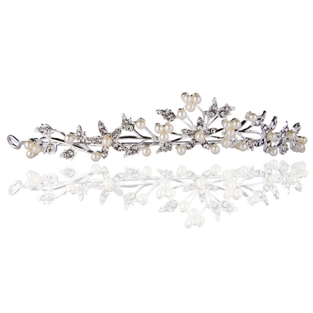 Wedding Party Hairband Headpiece Simple Leaf And Flower Shape Women Tiara Pearl Rhinestone Crown Headband Jewelry