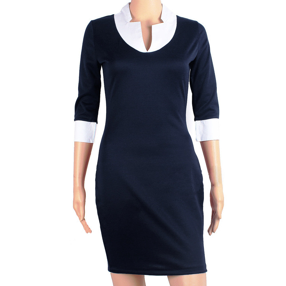Women Dress Deep V Neck Patchwork Design 3/4 Sleeve Causal Dress For Office Work Ladies bandage Dress